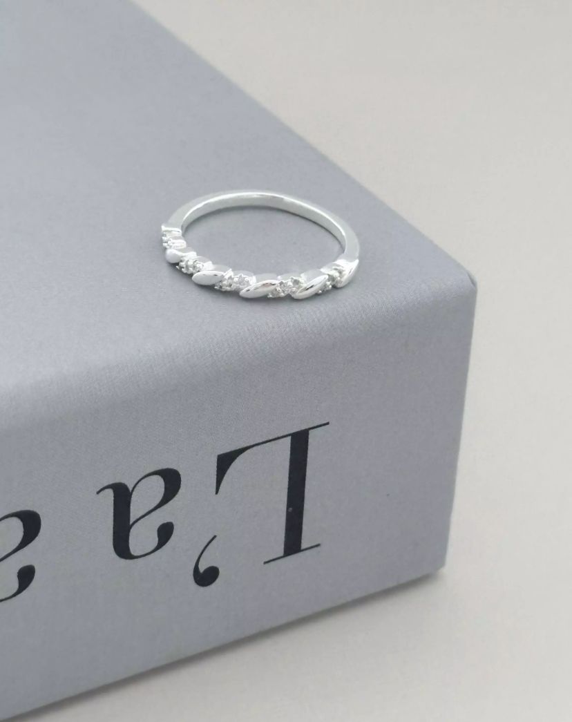 Prata 925 - Anel com trancinhas lisa e cravejadas.