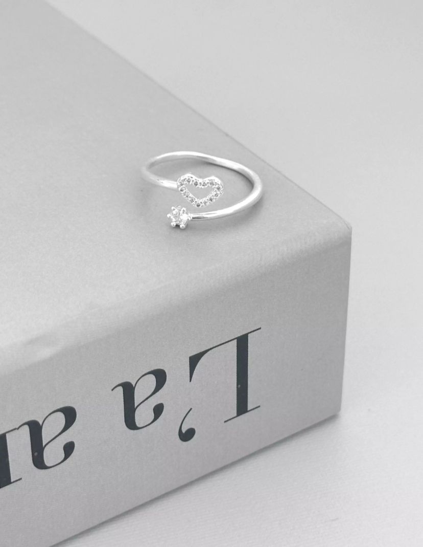 Prata 925 - Anel coração com ponto de luz - delicadeza que brilha.