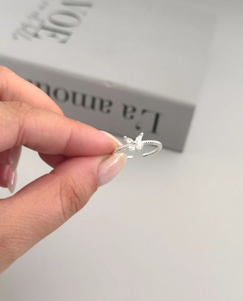 Prata 925 - Anel com trancinhas lisa e cravejadas.